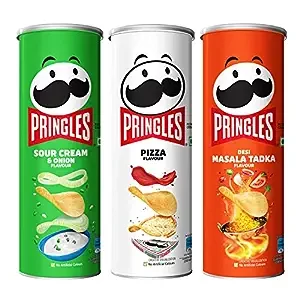 Kellogg's Pringles Original + Sour Cream & Onion + Desi Masala Tadka Flavour(107 grams each)
