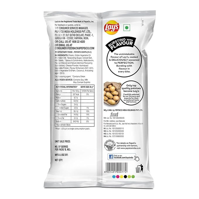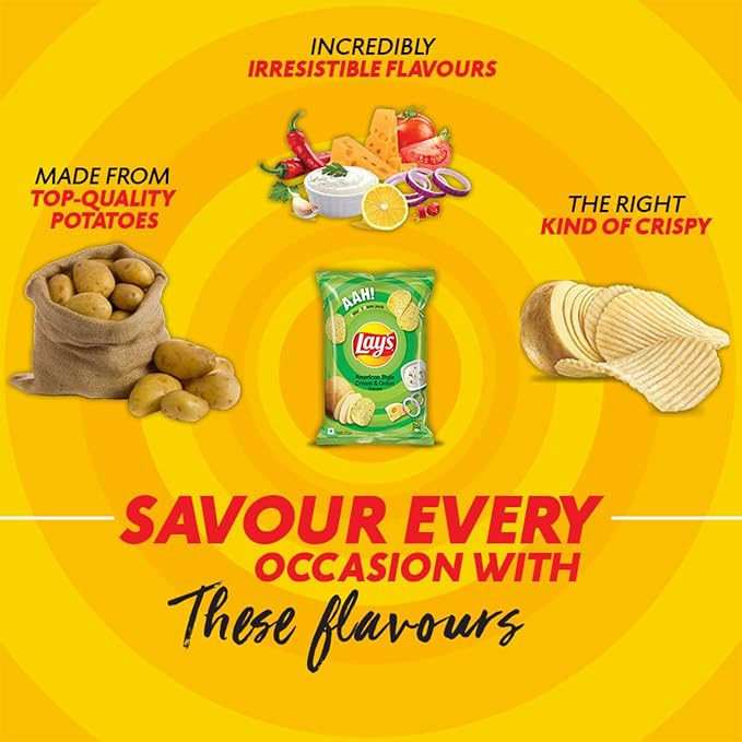 Lay's Potato Chips - American Style Cream & Onion Flavour, 90g/100g/104g(Pack of 3) (Weight May Vary)
