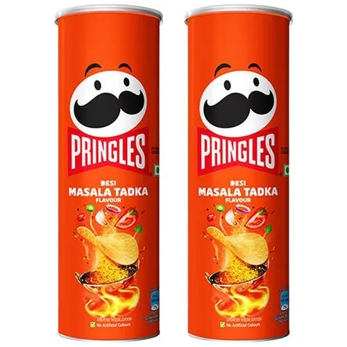 Pringles Potato Chips - Desi Masala Tadka Flavour, Crunchy & Crispy, 2x107 g Multipack